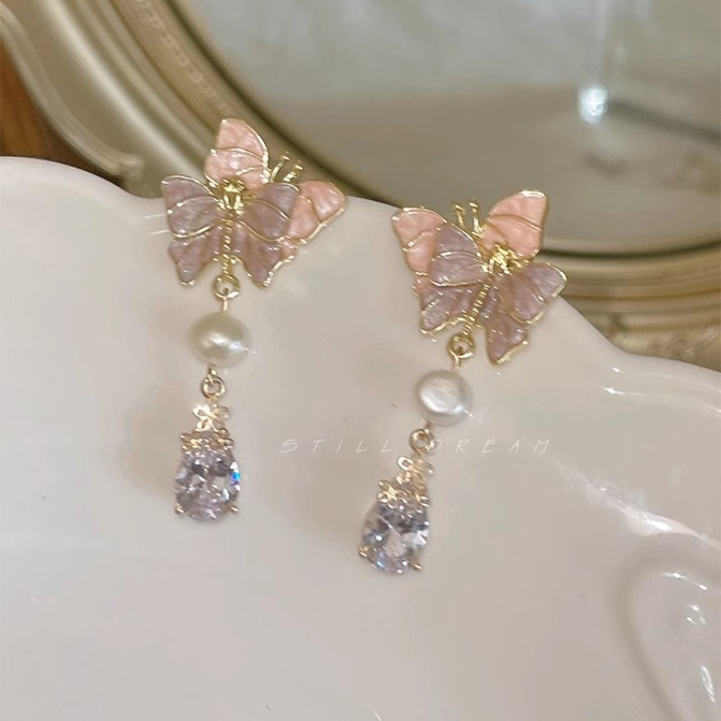 美人舞罗 ~ Ins風蝶イヤリング女性超仙アンドロメダ真珠耳飾り水滴花ピアス卸売り