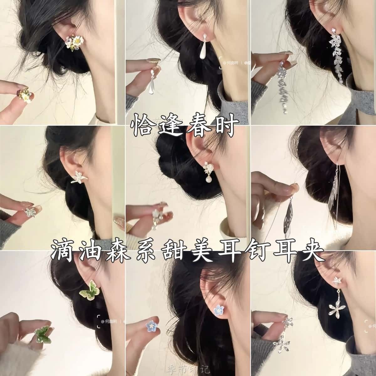 「春の花束」春夏のドリップフラワーイヤリング、ピアスのない森風甘くて万能なイヤークリップ