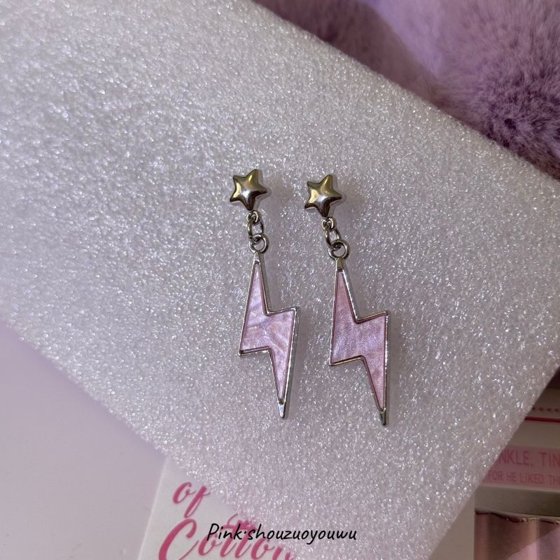 PINK-オリジナルデザイン シンプルな気質 インズ原宿 ピンク ライトニング キュート ガール 925 シルバー ニードル イヤー クリップ パーソナライズ ~