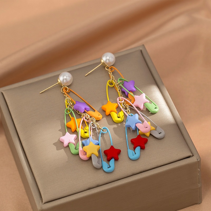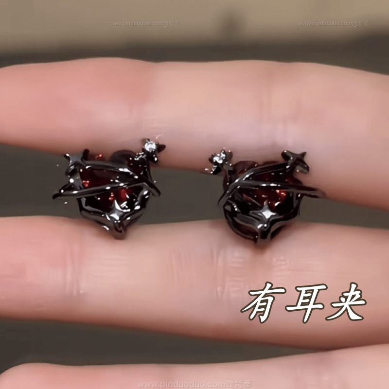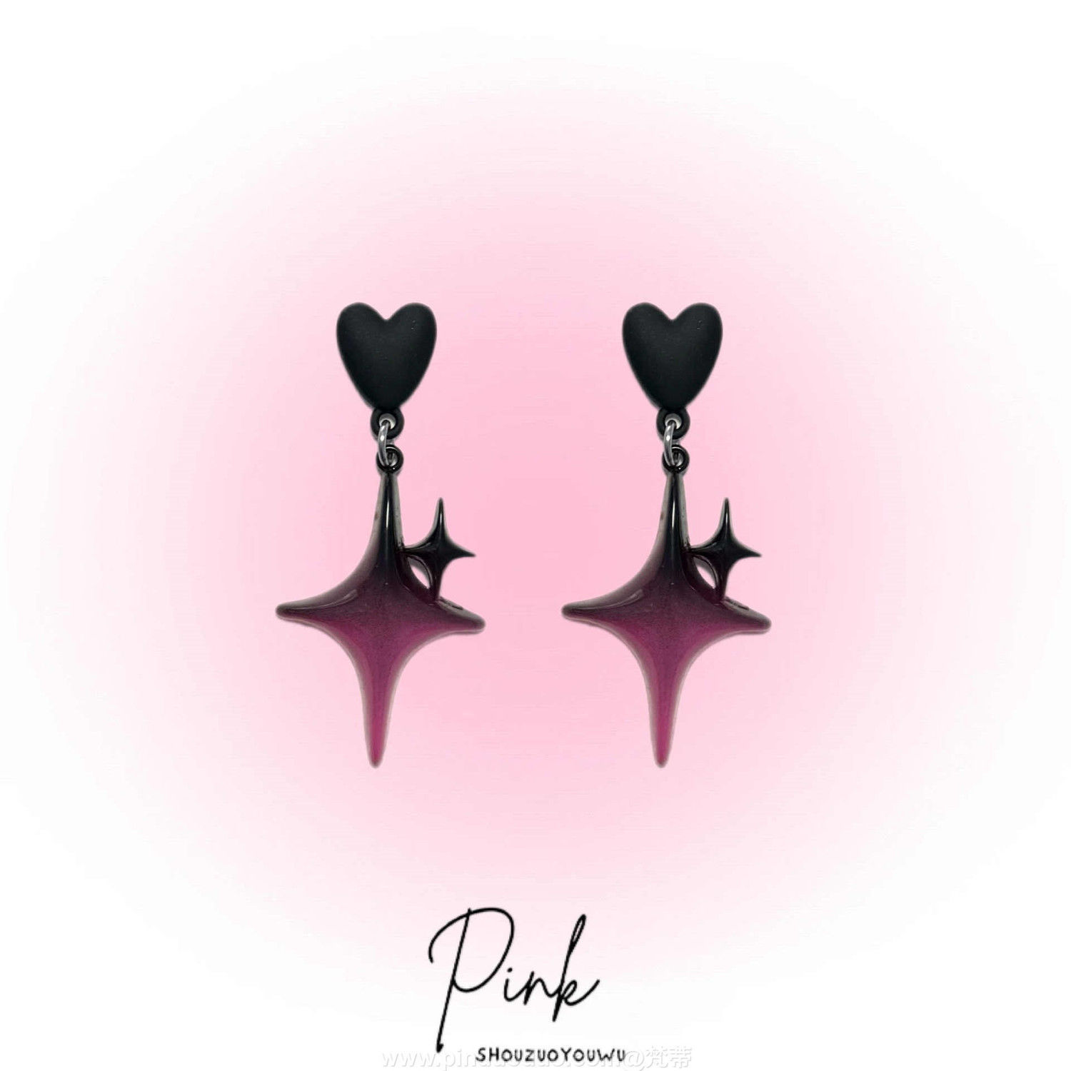 ピンク-オリジナルデザイン暗黒小衆insレトロ黒粉グラデーション星芒愛ギャル925ピアス