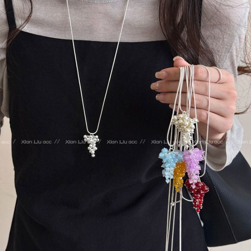 韓国ブドウビーズ天然石ペンダントネックレスレディースファッションシンプルハイエンド鎖骨チェーン気質多用途アクセサリー