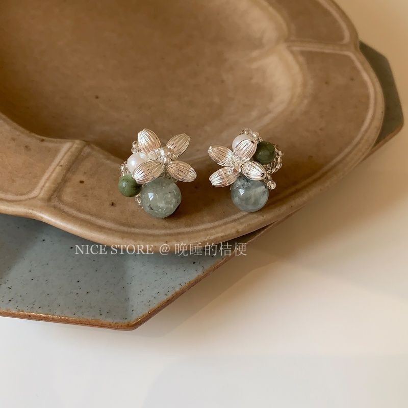 夜更かしのキキョウ「春の凧」新中国風レトロフラワーボール天然石イヤリングクールニッチ万能イヤリング