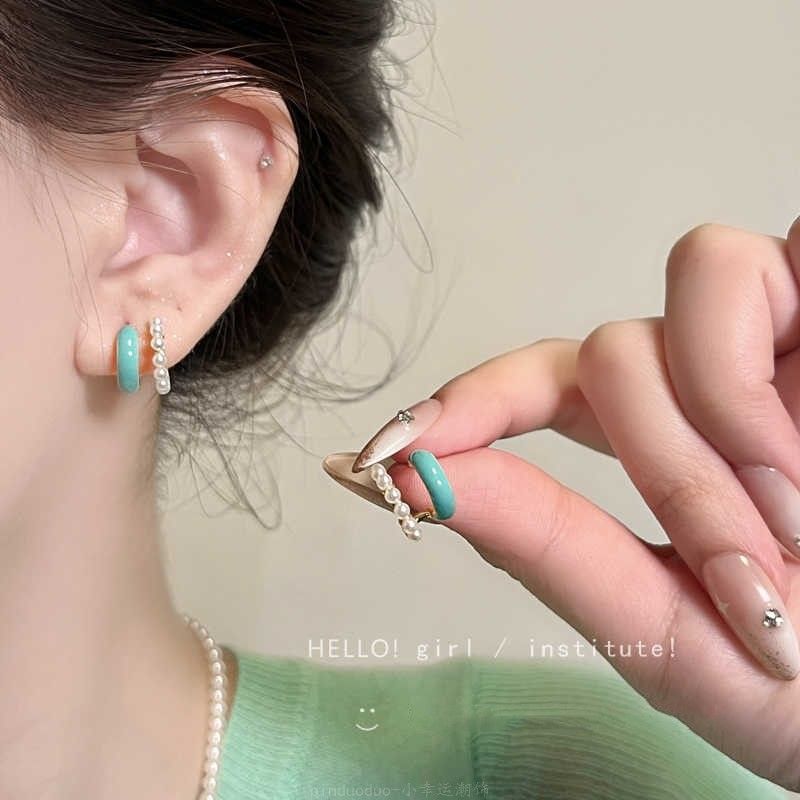 エナメルの釉薬C型真珠の耳輪の女性の軽い豪華なレトロな気質の高級感のイヤリングのイヤリングのイヤリングの2025新型のピアス
