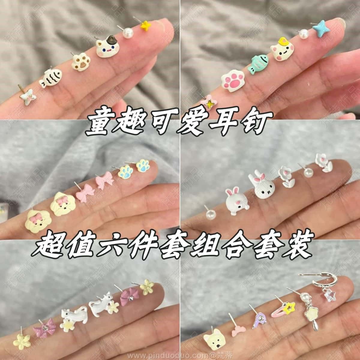 猫と小魚 ~ 童趣味かわいい小魚セットピアス女性小衆デザイン甘いイヤリング森系新作ins