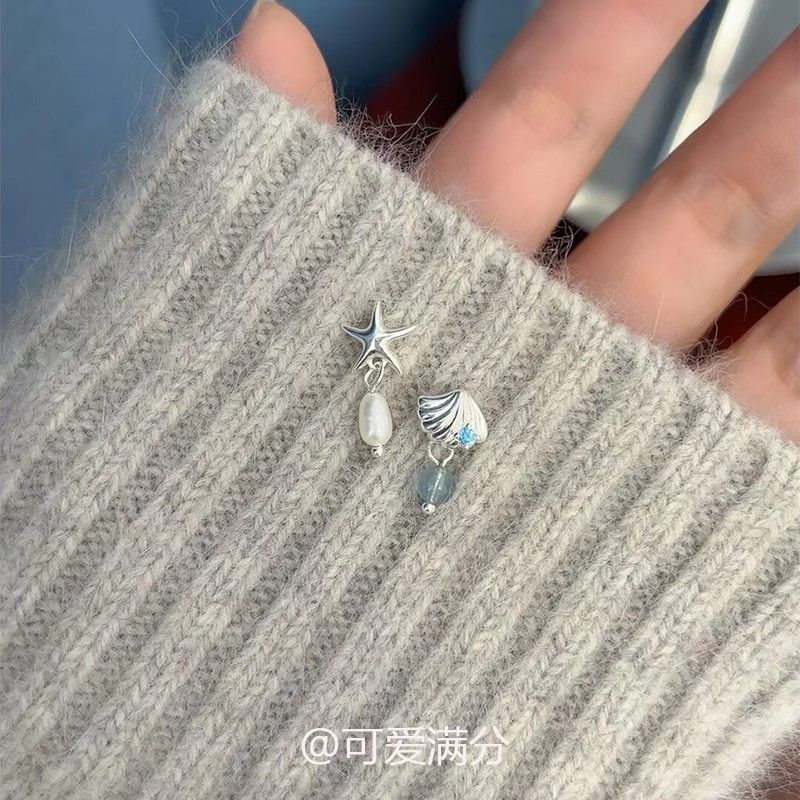 「幻想的な海」フランス貝殻海星非対称ピアスの清冷感が洗練されたイヤリング