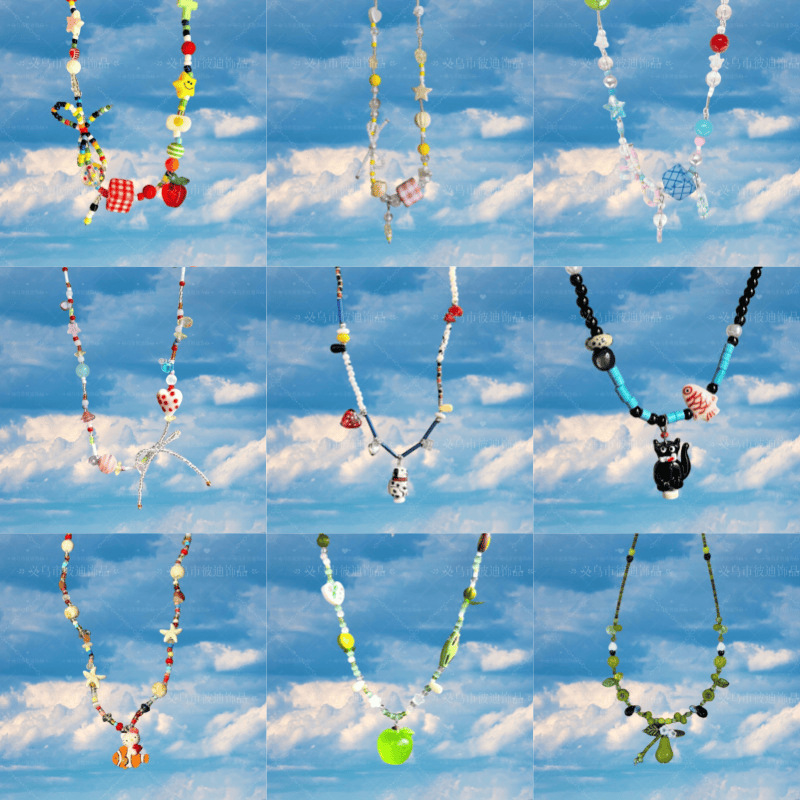 奇妙な女の子〜夏のニッチデザイン多用途イン新しいコントラストカラー通勤ダルメシアンカラービーズネックレス