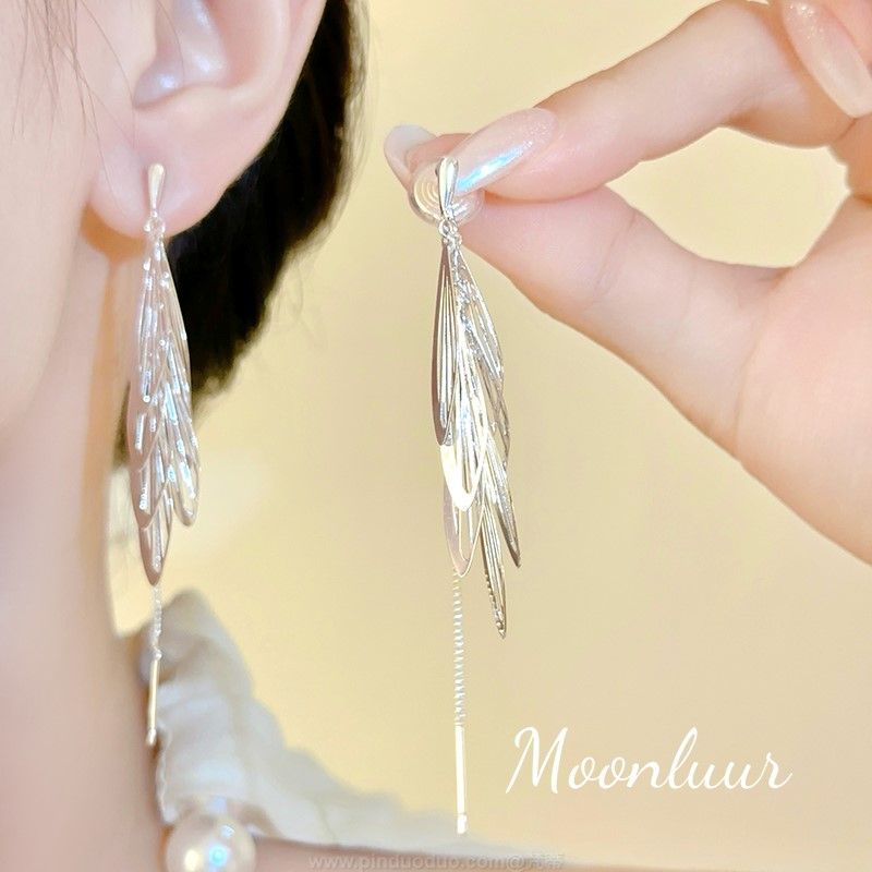 波の光がきらきらと輝く仙気の超きらきらと光る羽のフリンジの耳の穴のない耳のクリップの気質の組み合わせの独特な軽豪華な高級感のイヤリング