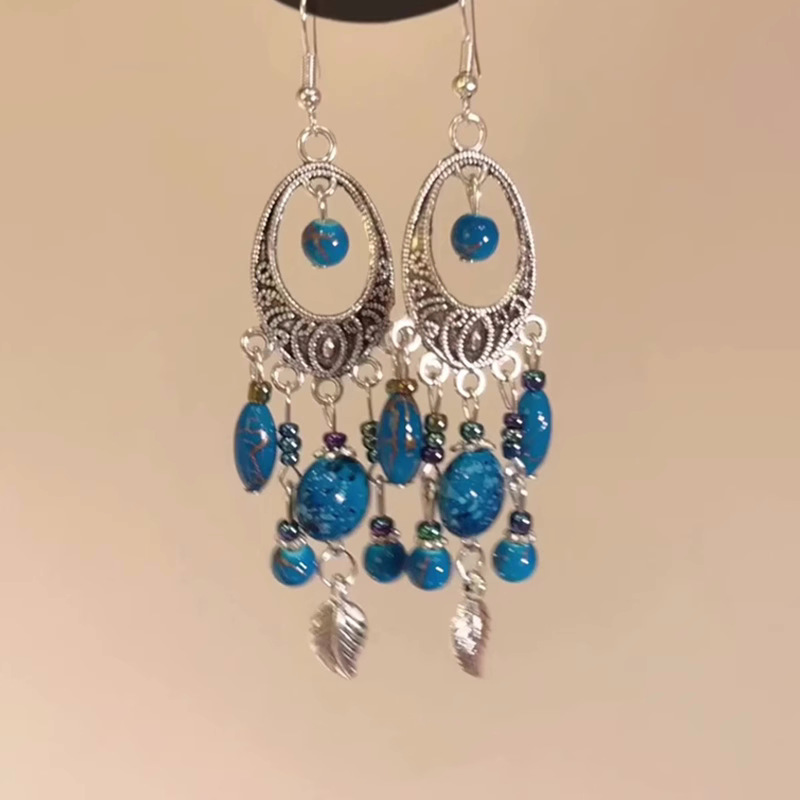 「浮光入海」レトロボヘミアン流蘇イヤリング民族風イヤリング新中国式顔小耳飾り女