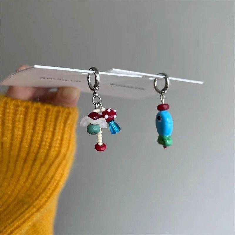 手作のイヤリングのキノコの魚は色の赤い青い港の風の復古のイヤリングにぶつかってかわいい小魚の小清新な耳飾りの新型の耳飾りを作ります。