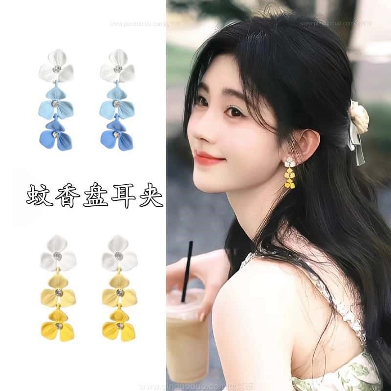 カラー花蚊取り盤耳クリップ女925銀針デザイン感ロングスタイル気質イヤリングかわいい甘いイヤリング