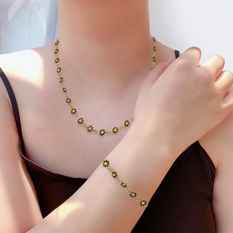 春夏新作小清新田園風ネックレス小衆シンプル気質カラー花ネックレスブレスレットセット