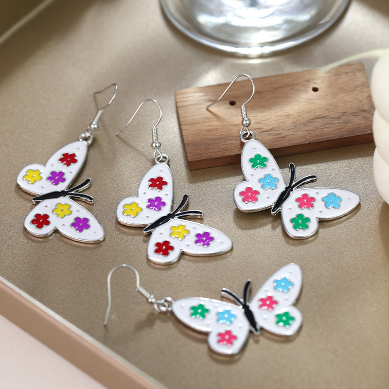 春夏新作小清新田園風カラー滴油花蝶イヤリング小衆ファッションシンプル気質耳飾り