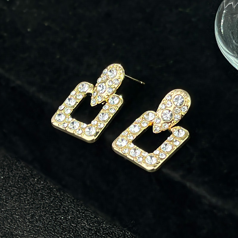 ファッションは軽くて豪華な通勤の四角形の四葉の菱の紋様はドリルのピアスを入れて小さくて精巧で高級感があります。