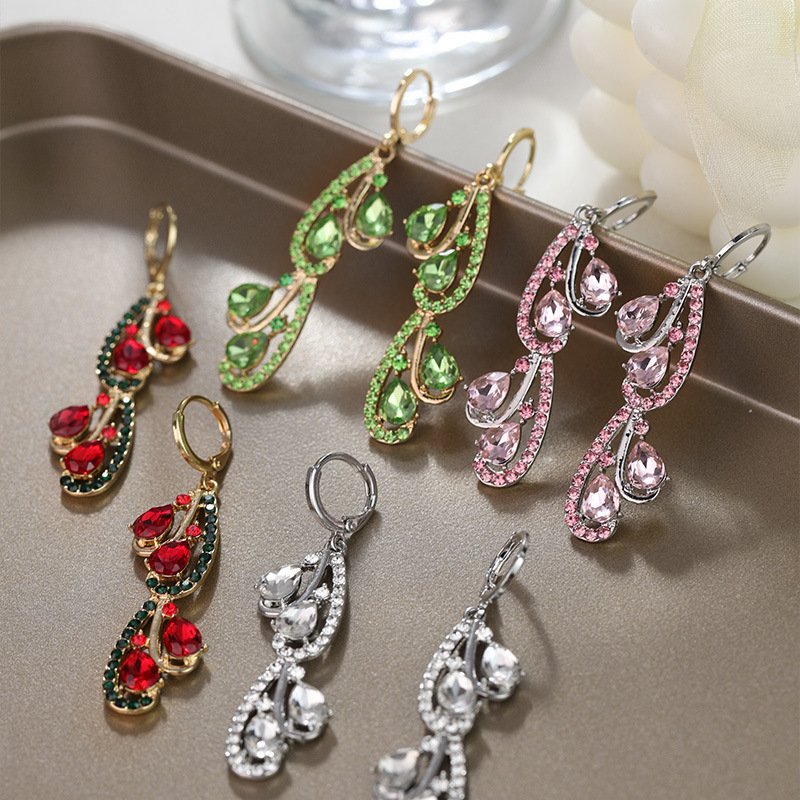 2024欧米のクロスボーダーの新型のダイヤモンドの宝石の水滴のイヤリングのファッションの小さい大衆の長い金型のフリンジの耳掛けの耳飾りの卸売り