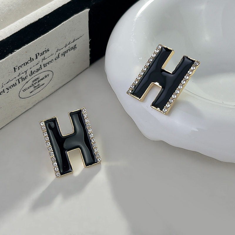 小清新アルファベットhピアス女性s 925銀針紅本起爆アクセサリーシンプルins風百合耳飾り卸売り