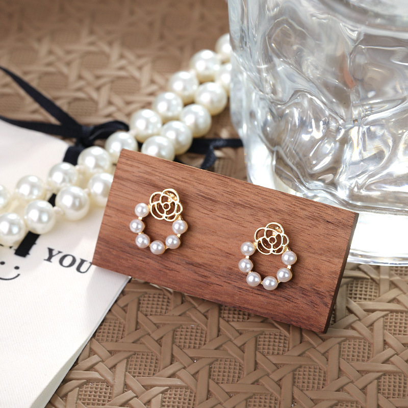 バラの真珠のピアスの女性レトロな香港風の輪のイヤリングの銀の針の森系の少女の個性的なデザイン感のイヤリングの潮