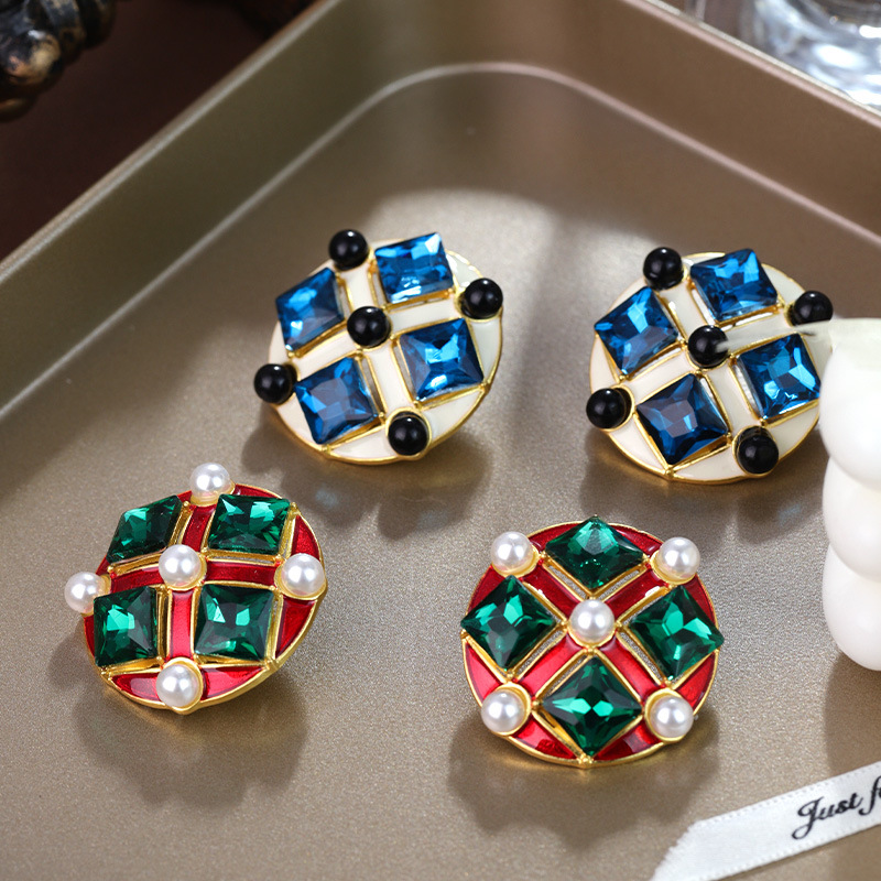 中古イヤリング手作り瑠璃真珠レトロ幾何学円民族風女性ファッション大気s925銀針耳飾り