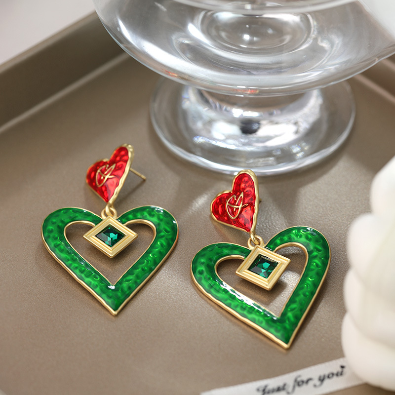 欧米の誇張イヤリング愛ハート型イヤリング女性多層桃心合金滴油アクセサリー対外貿易ソースearrings