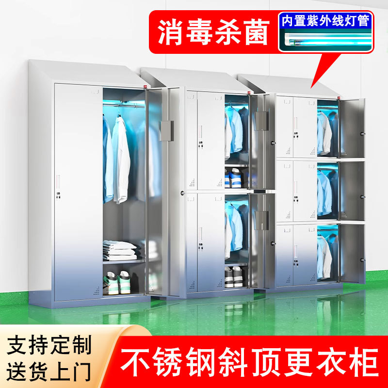 304ステンレス鋼の傾斜天井更衣室、無塵無菌浄化工場、紫外線消毒収納キャビネット、従業員用靴箱