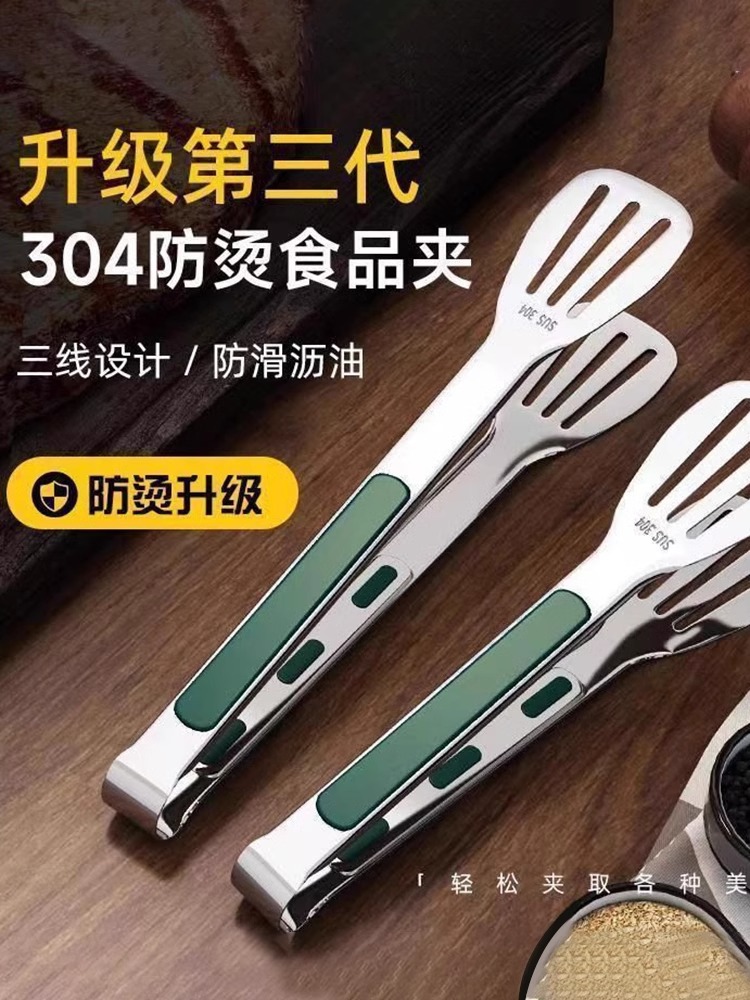 304ステンレス食品クリップ台所パーマ防止ステーキ食品専用バーベキュー焼肉手掴みパンケーキマントークリップ1