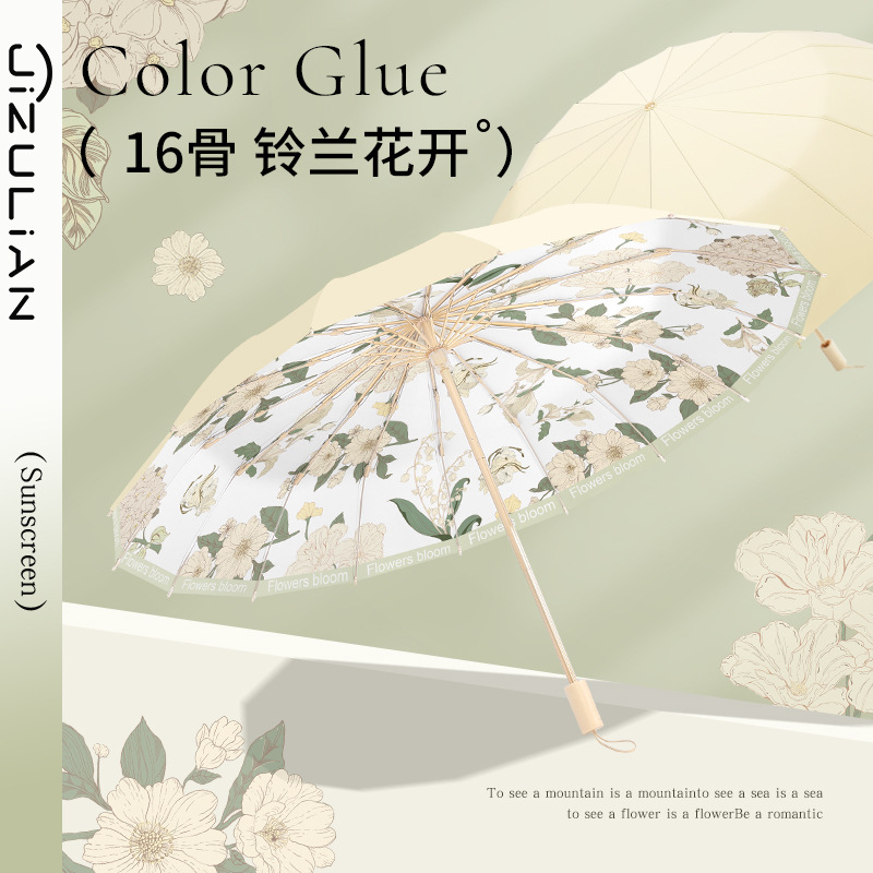 姫祖蓮16骨傘女性折り畳み大サイズ耐風晴雨両用日傘日焼け止め紫外線防止パラソル