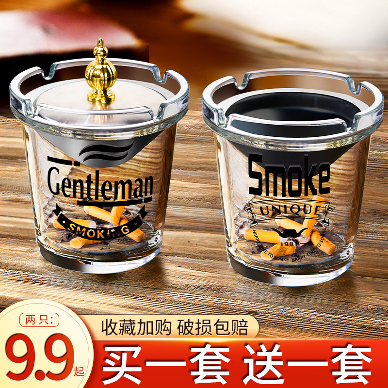 ガラス灰皿防飛灰創意家庭用リビングルーム軽豪華高級感オフィス防風灰皿蓋付き寮