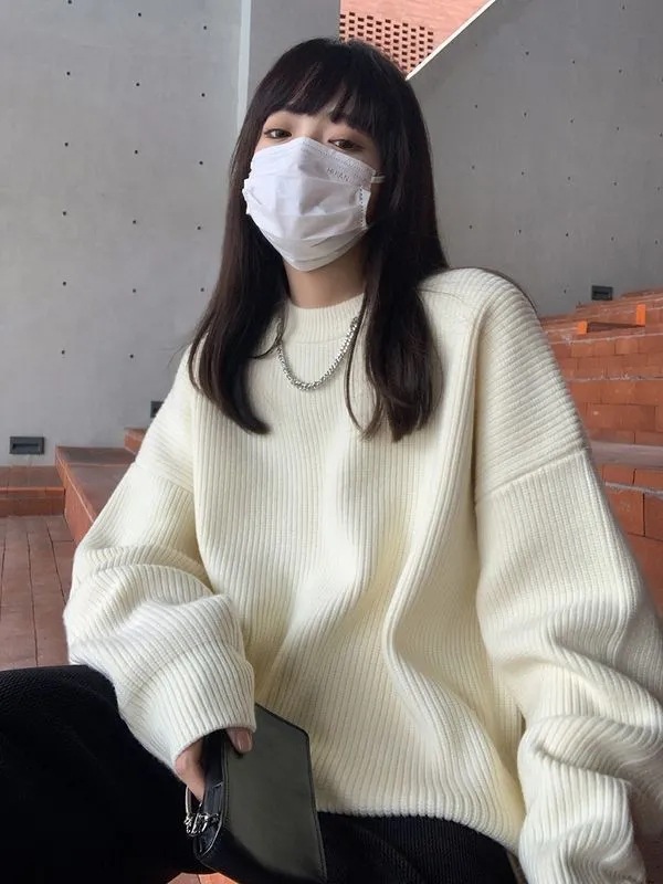 Douyin Tmall 品質ソリッドカラーシルエットラウンドネックセーター女性のルーズカジュアルレイジースタイル厚みのあるニットジャケット
