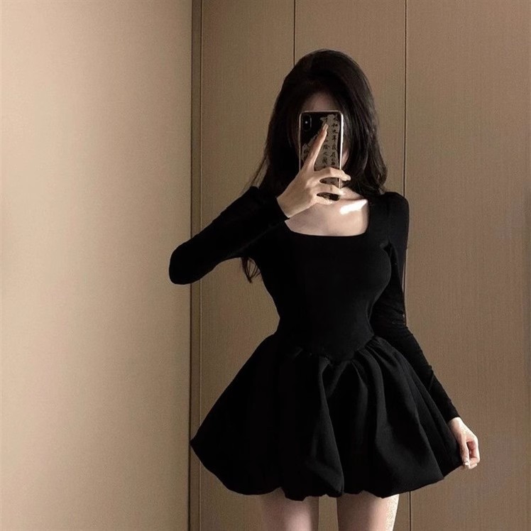 リッチガールフラワーバドドレスレディース春秋リトルブラックドレス誕生日ドレスプリンセスふわふわショートスカート