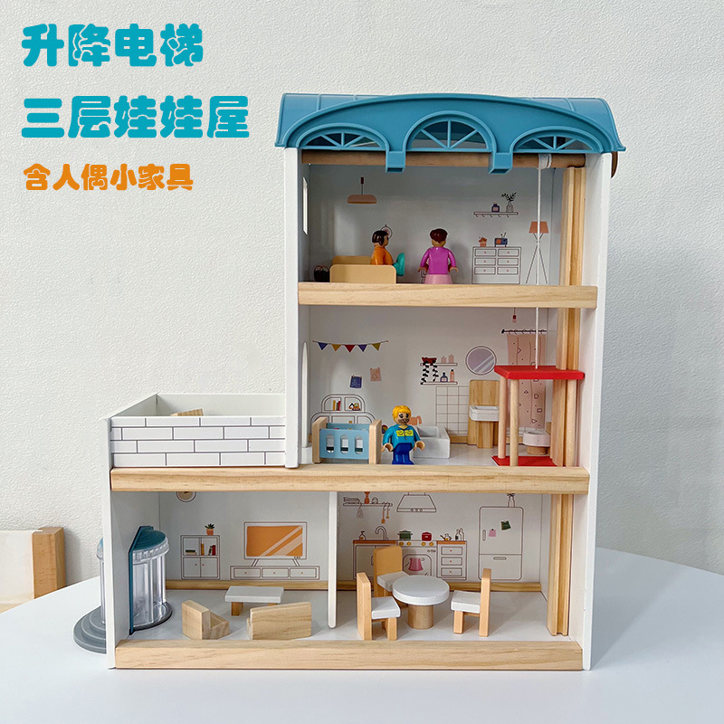 木製ins北欧風人形屋玩具男の子シミュレーションおまままごと人形屋お姫様別荘人形家