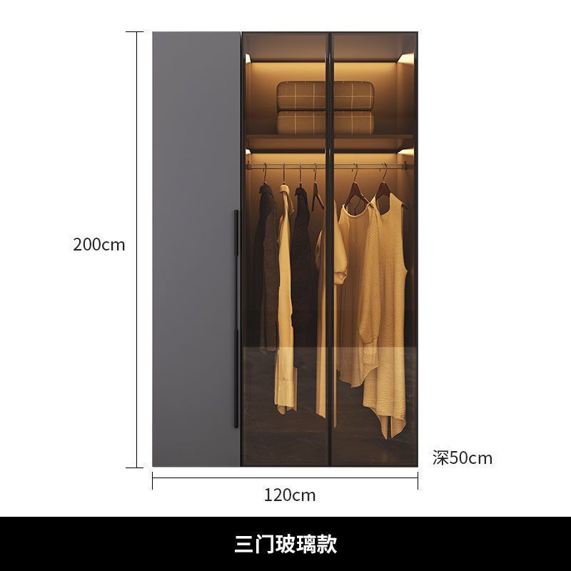 軽量高級ワードローブ、ホームベッドルーム、無垢材、モダンでシンプルな収納、シンプルなガラスドアの組み合わせキャビネット、カスタマイズ可能な大型ワードローブ