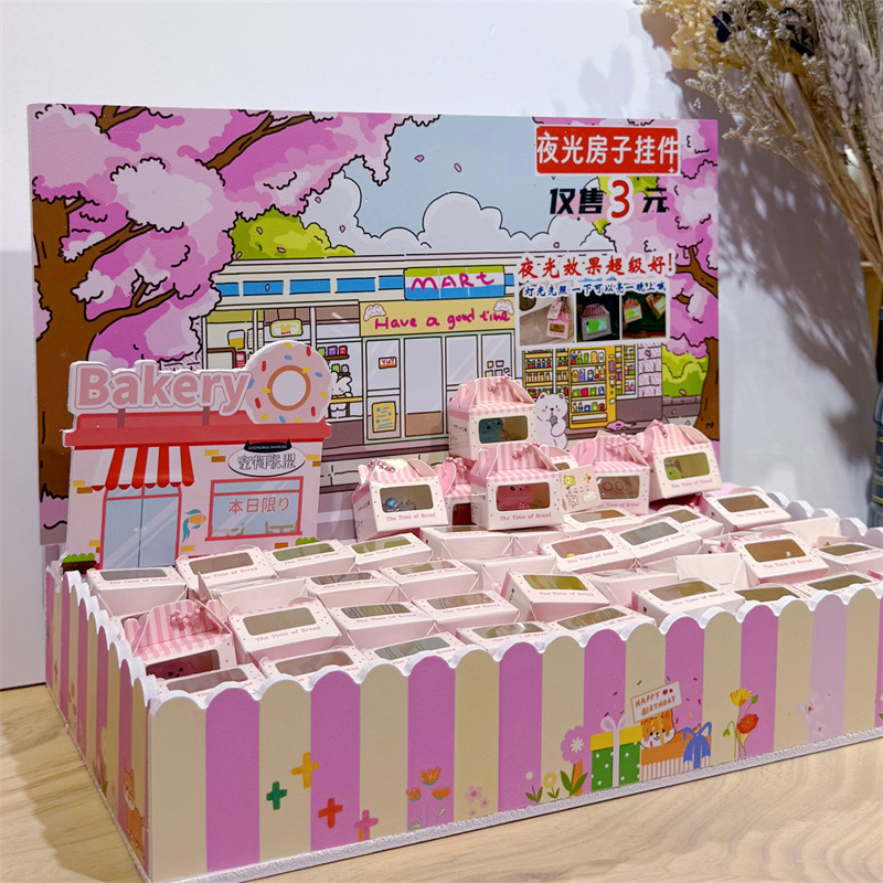 新しい夜光動物の家のストラップ3d立体ミニ食遊びストラップ装飾場ミニチュア風景置物キーホルダー