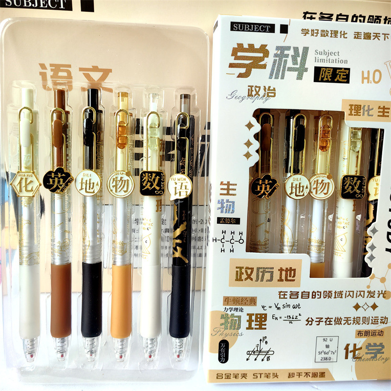 新しい主題祝福ゲルペン金属パッチペン 0.5 黒水ブラシ質問ペン 6 パック学生ギフトペン