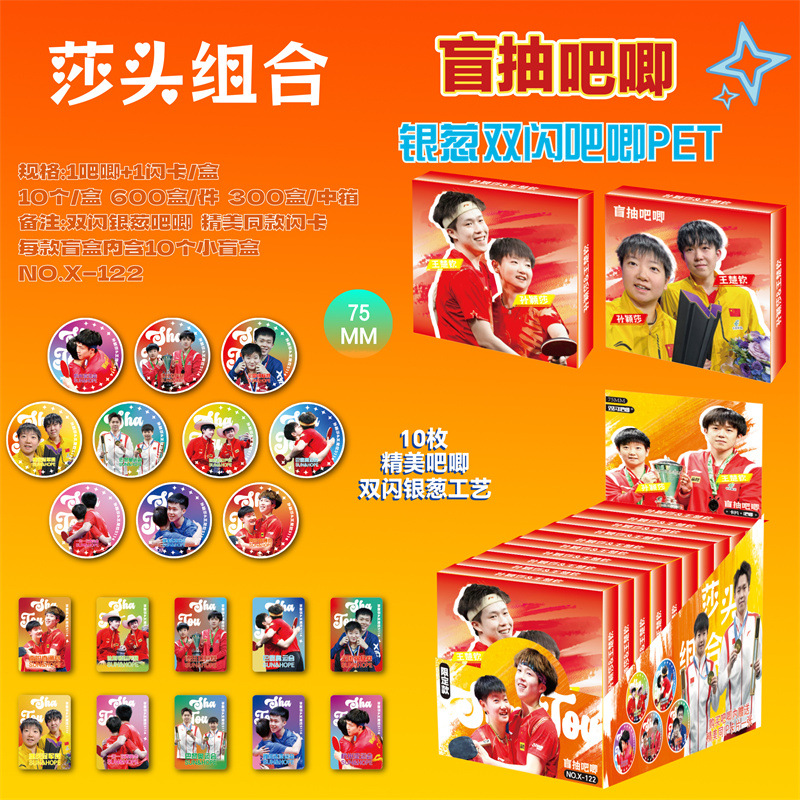 スポーツスターの莎の頭の組み合わせのバッジのブラインドの箱の75mmの双閃銀のネギのバッジのブラインドは小さいカードのバッジをくわえます。