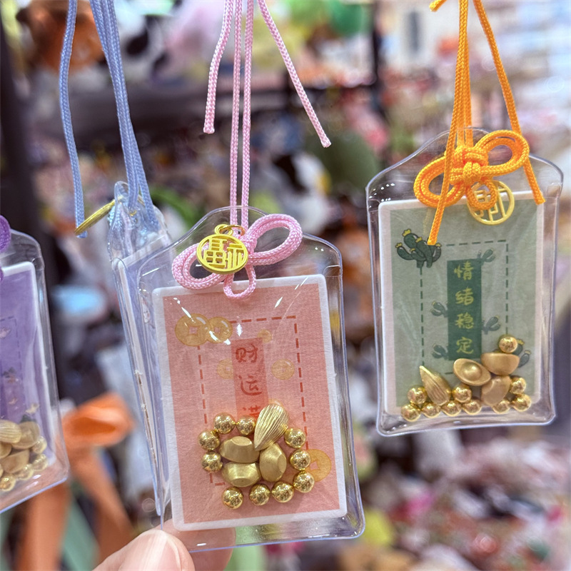 新商品の御守の祈りのハンガーに幸運のカバンを入れます。今日の大吉の幸運の御守のペンダントは卸売りします。