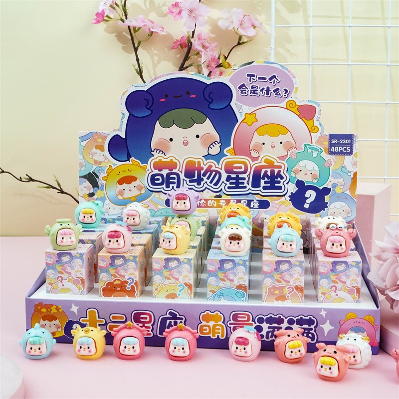 新しい十二星座の実色の公仔の置物の小さいブラインドの箱の漫画のかわいいデスクトップの装飾の創意の手は小さい公仔を作ります。