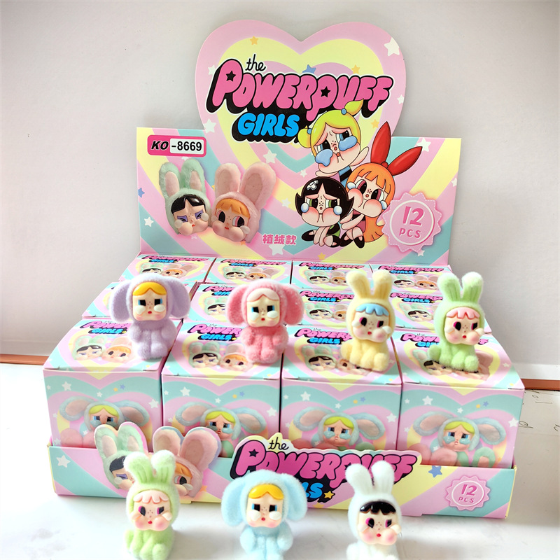 潮は樹脂の立体の植毛を遊んで泣いて子供のウサギの公仔の盲の箱の飛天の小さい女性の警官の萌える粒の置物の公仔の卸売りを遊びます。