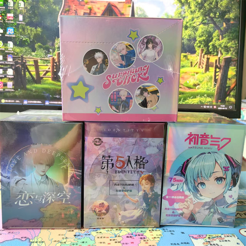 新しい二次元シリーズのバッジブラインドケース75mmブリキバッジ10個の重複しないバッジ卸売り