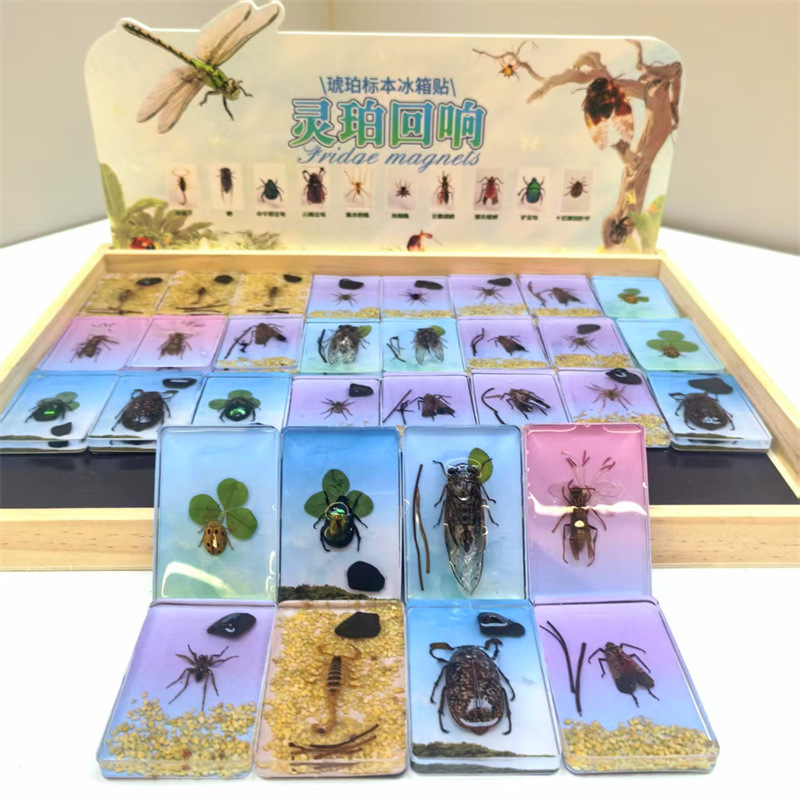 リンパーエコー本物の昆虫標本クリエイティブカブトムシ冷蔵庫マグネット樹脂接着剤昆虫教材琥珀装飾品