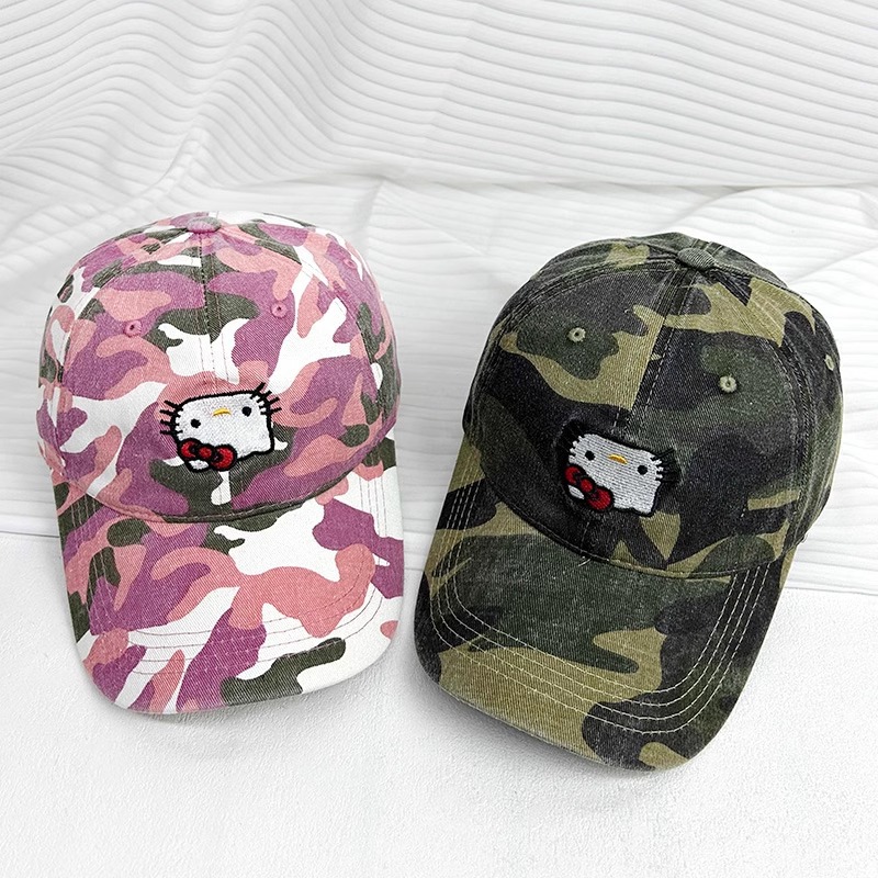 アメリカン迷彩かわいい刺繍kitty猫野球帽女性ソフトトップヒップホップ千年ギャル風アヒル舌帽潮