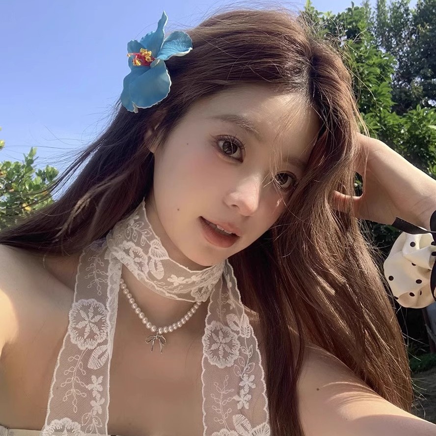韓国版新型森系レースヘアバンドレース百合甘insネット紅気質シルクタオル両用超仙リボン