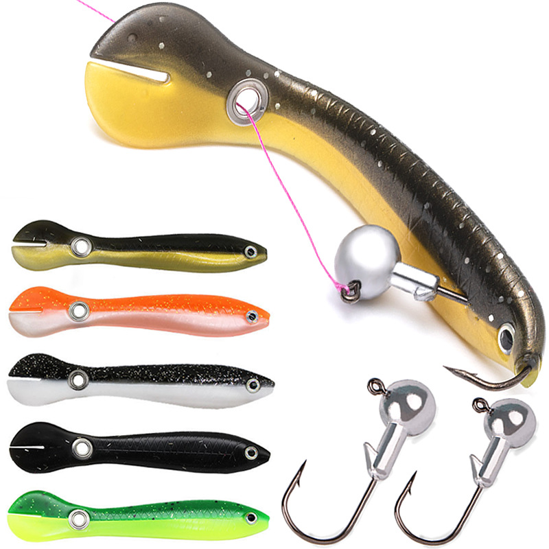 吊り下げ防止の鉛の頭のフックの柔らかい餌のセットの軟虫の路亜の偽の餌のセットはフックを強化してスズキの首を釣ります。