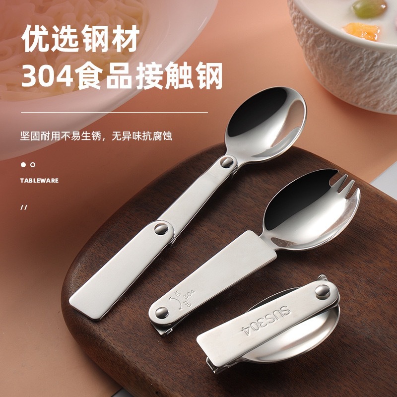 304ステンレス三つ折りスプーン屋外旅行ポータブル食器回転二つ折りスプーンフォーククリエイティブミニスプーン
