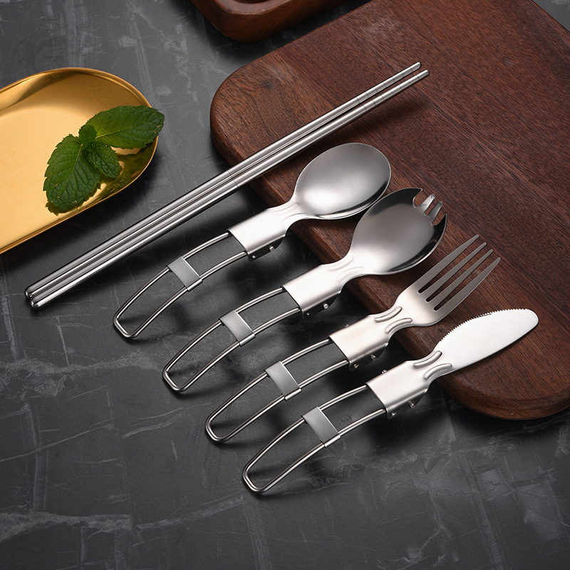 304ステンレス折りたたみナイフフォークスプーン食器セットアウトドアキャンプポータブル食器持ち物サラダスプーン箸