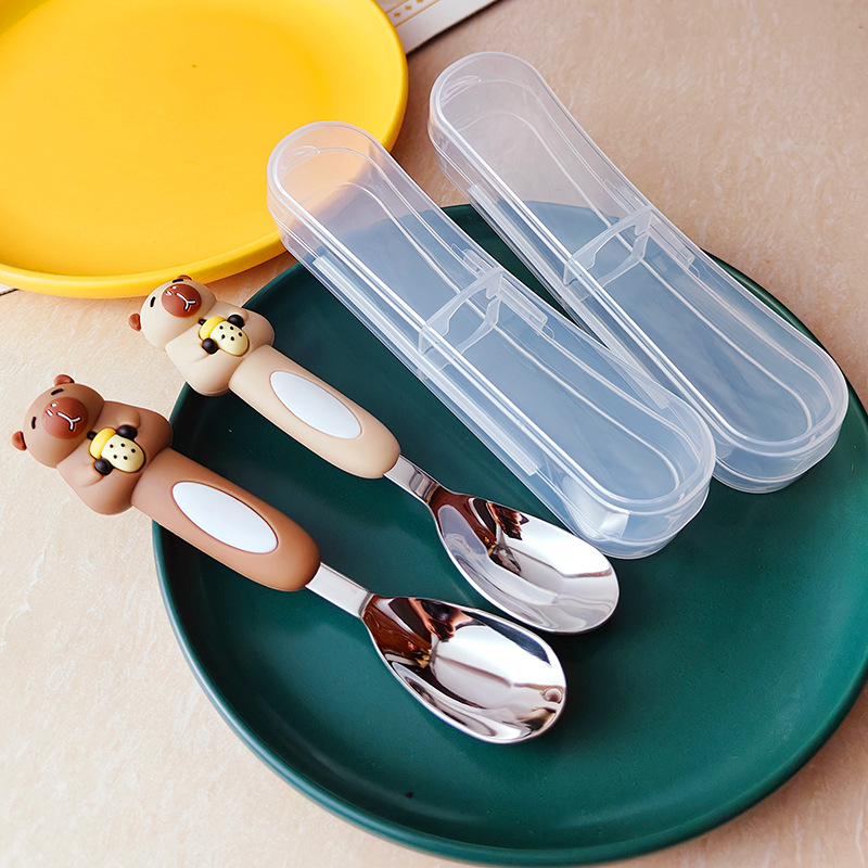 316子供ステンレススプーン長柄パーマ防止ソフト柄元宝スプーン赤ちゃん給餌食事専用補助スプーン