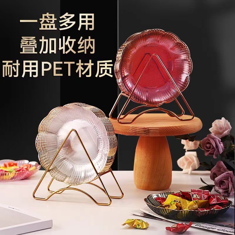 軽くて豪華な金辺の果物の皿の皿は骨の皿の乾燥している果物のプラスチックの皿の家庭用の丸い果物の皿を吐きます。
