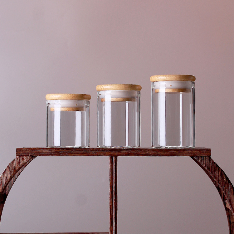 3CM直筒実木蓋瓶透明ガラス密封小缶貯蔵収納小ガラス瓶展示瓶香粉瓶