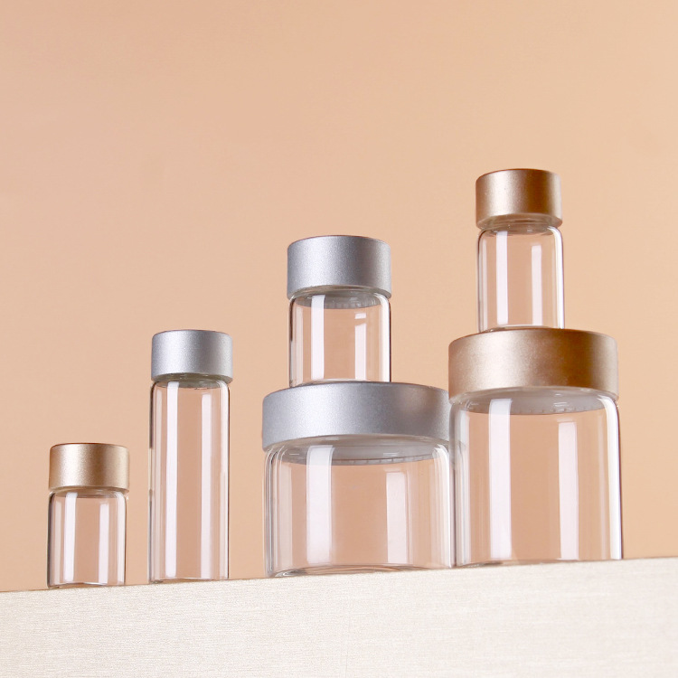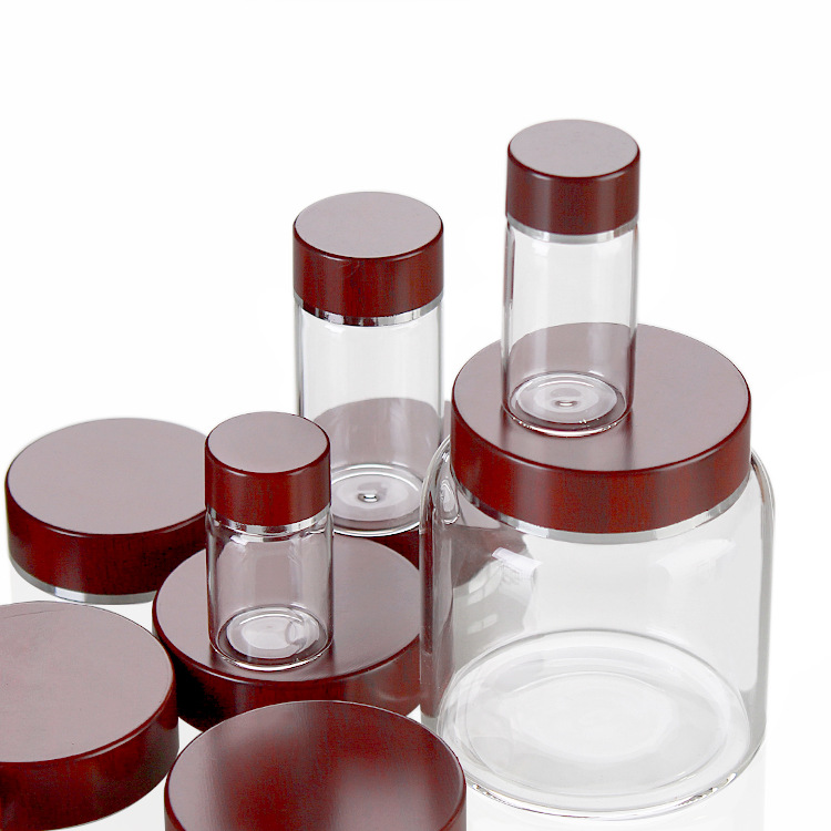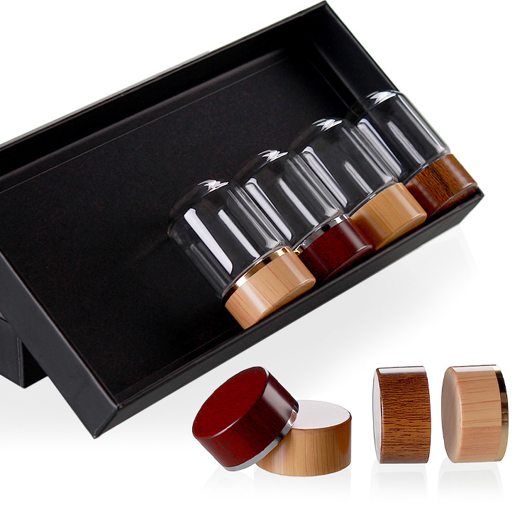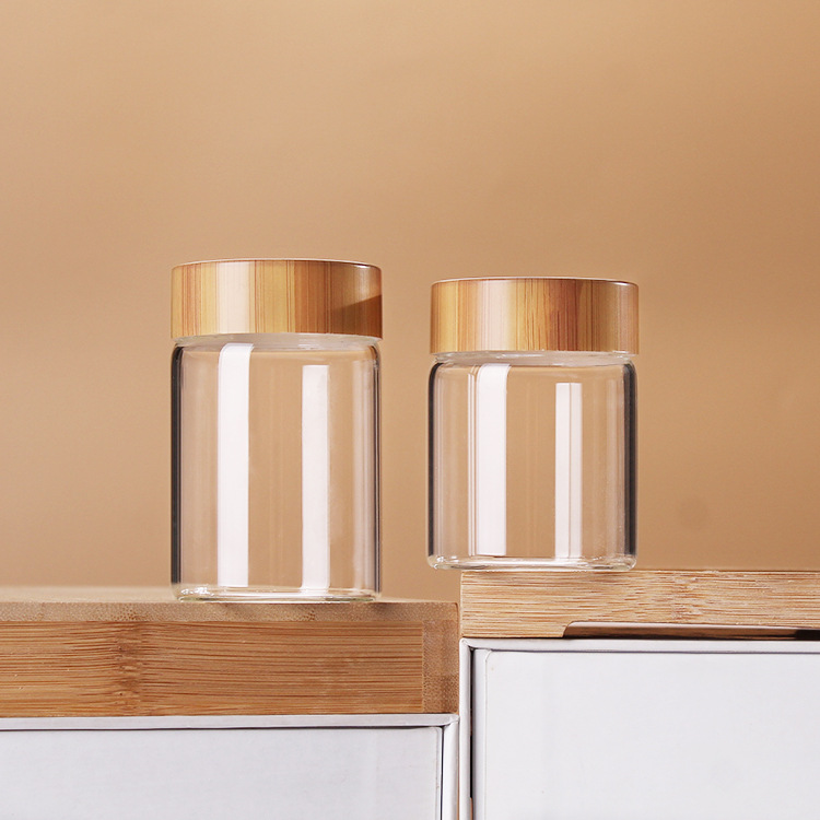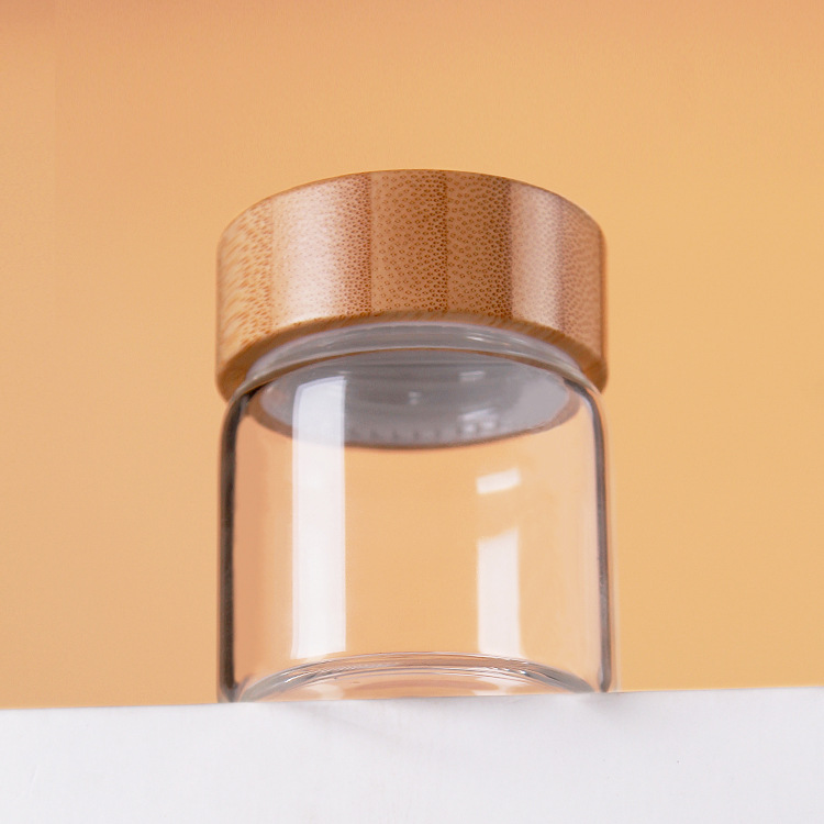 高ホウ素シリコン食品級ガラス瓶実木蓋竹蓋保健品礼箱50ml広口ねじ密封管製瓶