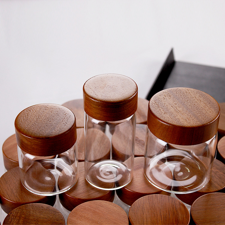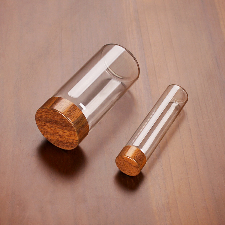 源卸密封分注瓶木目蓋コーヒー収納シングル展示コーヒー豆試験管
