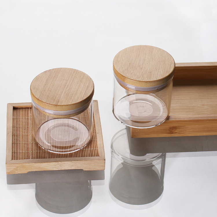 多規格の軽贅沢ギフトボックスにガラスの空缶木蓋高級透明食品級創意密封缶を入れます。