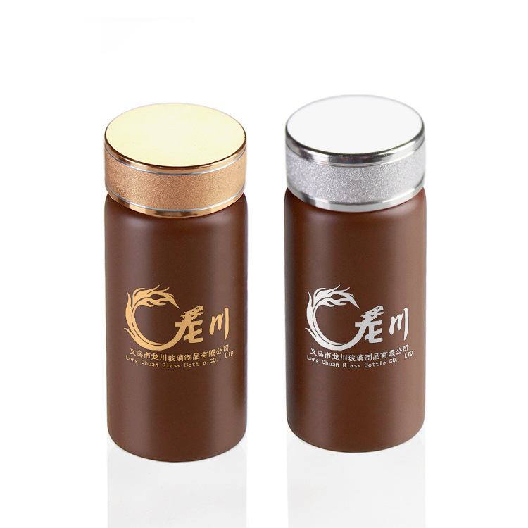 龍川ガラス二本礼箱木製蓋ねじ口ガラス瓶保健滋補100g石gok粉瓶